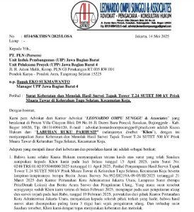 “Berdasarkan hal-hal tersebut di atas, kami menyatakan dengan tegas bahwa: Klien kami berada dalam zona terlarang dan berbahaya secara teknis maupun regulatif untuk pendirian Tower SUTET 500 kV Priok Muara Tawar (T.24) dan berhak atas relokasi atau pembebasan lahan serta kompensasi,” tegasnya.