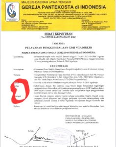 Berikut kebijakan MD Jateng yang berakibat terjadinya kekisruhan di GPdI Ngadirejo;