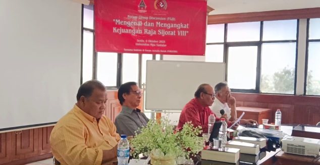 Mengawali diskusi, Ludin Panjaitan, S.H, MM yang mengaku sebagai bagian ketutunan Raja Sijorat VIII memaparkan kisah perjuangan Raja Sijorat melawan tentara Belanda di tanah Batak.