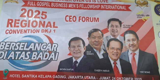 Jakarta, majalahspektrum.com – FULL Gospel Busines Men’s DKJ-1 menggelar Convention CEO Forum bertajuk; “Berselancar di Atas Badai”, menghadirkan pembicara CEO dari perusahaan kelas dunia (International Company), Jumat (24/10/2025).